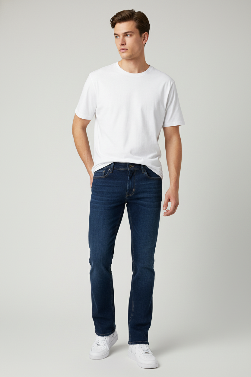 Crafted with 98% premium compact silk-touch cotton and 2% elastane, these bootcut stretch men's jeans offer the perfect fit and freedom of movement.